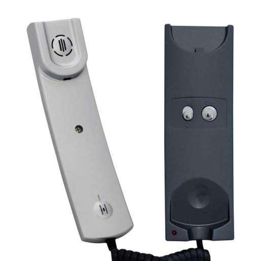 Устройство квартирное переговорное со световой индикацией и регулировкой громкости вызова. Цвет: трубка - серебряный металлик, подставка - серый металлик.