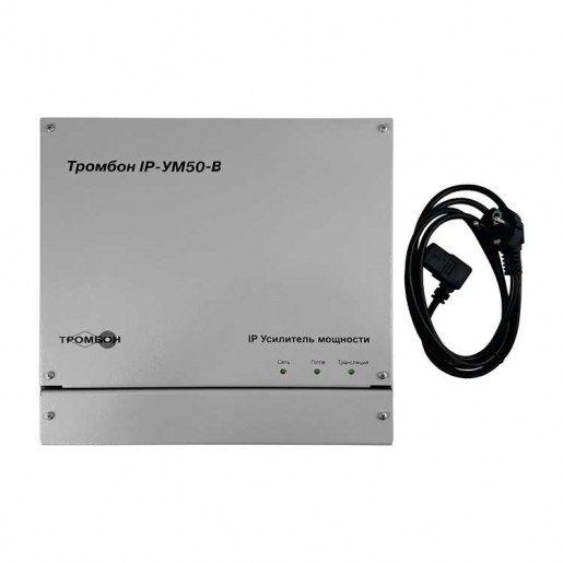 Усилитель мощности «Тромбон IP-УМ50-В» предназначен для работы совместно с пультом звукового вещания «Тромбон IP-ПЗВ», блок оповещения «Тромбон IP-БО8» и модуль сопряжения с каналами связи МЧС «Тромбон IP-МЧС». Усилитель мощности предназначен для приёма голосовых, звуковых, тревожных и иных сообщений от пультом звукового вещания «Тромбон IP-ПЗВ», блоков оповещения «Тромбон IP-БО8» и модулей сопряжения с каналами связи МЧС «Тромбон IP-МЧС», декодирования, усиления и воспроизведения на оконечные устройства – речевые оповещатели.
