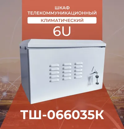 - Климатический шкаф с металлической дверью — 6U (60×35 см). Рассчитан на эксплуатацию при температуре от –40°С до +40°С, что делает его подходящим для уличных объектов связи, камер видеонаблюдения и промышленной автоматики. Цельносварной корпус из стали толщиной 1,5–2 мм имеет порошковое полимерное покрытие, устойчивое к атмосферным воздействиям. Внутренний фольгированный теплоизоляционный слой снижает теплопотери, а вентиляционные отверстия с фильтрами гарантируют стабильный температурный режим.